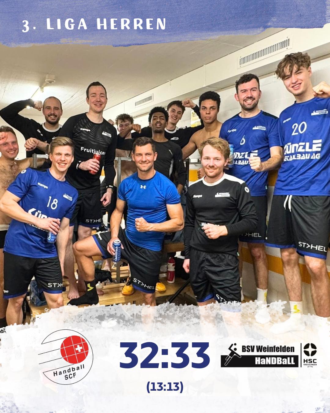 Fünfter Sieg in Serie! Das Auswärtsspiel gegen Frauenfeld war nichts für schwache Nerven. Die Gastgeber fanden zwar etwas besser ins Spiel, doch Weinfelden kämpfte sich sukzessiv zurück, konnte sogar kurzzeitig in Führung gehen, ehe die Partie bis zur Pause quasi wieder auf null gesetzt wurde (13:13). Auch im zweiten Durchgang blieb es ein spannendes Kopf-an-Kopfrennen mit leichten Vorteilen für den BSV, doch kein Team konnte mit mehr als drei Toren davonziehen. In der Schlussphase gelang Youngster Moritz Rieg der bejubelte Siegestreffer zum 33:32. Bravo!
